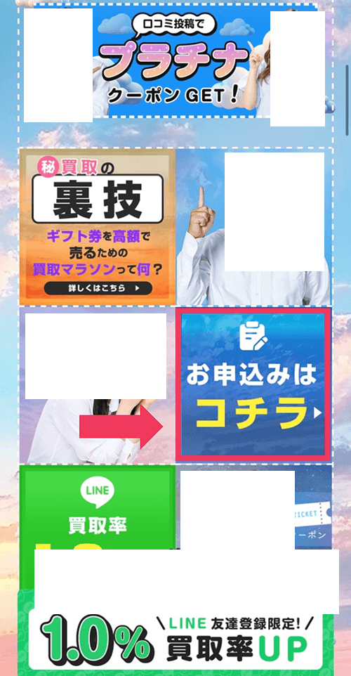 まず、買取スカイハイの公式サイトにアクセスし、「お申し込みはコチラ」ボタンをタップします。